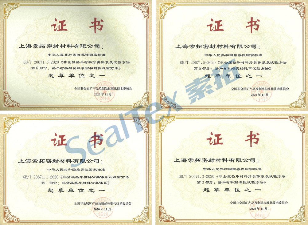 我司參與起草了GB/T 20671-2020《非金屬墊片材料分類體系及試驗(yàn)方法》中的多個部分。